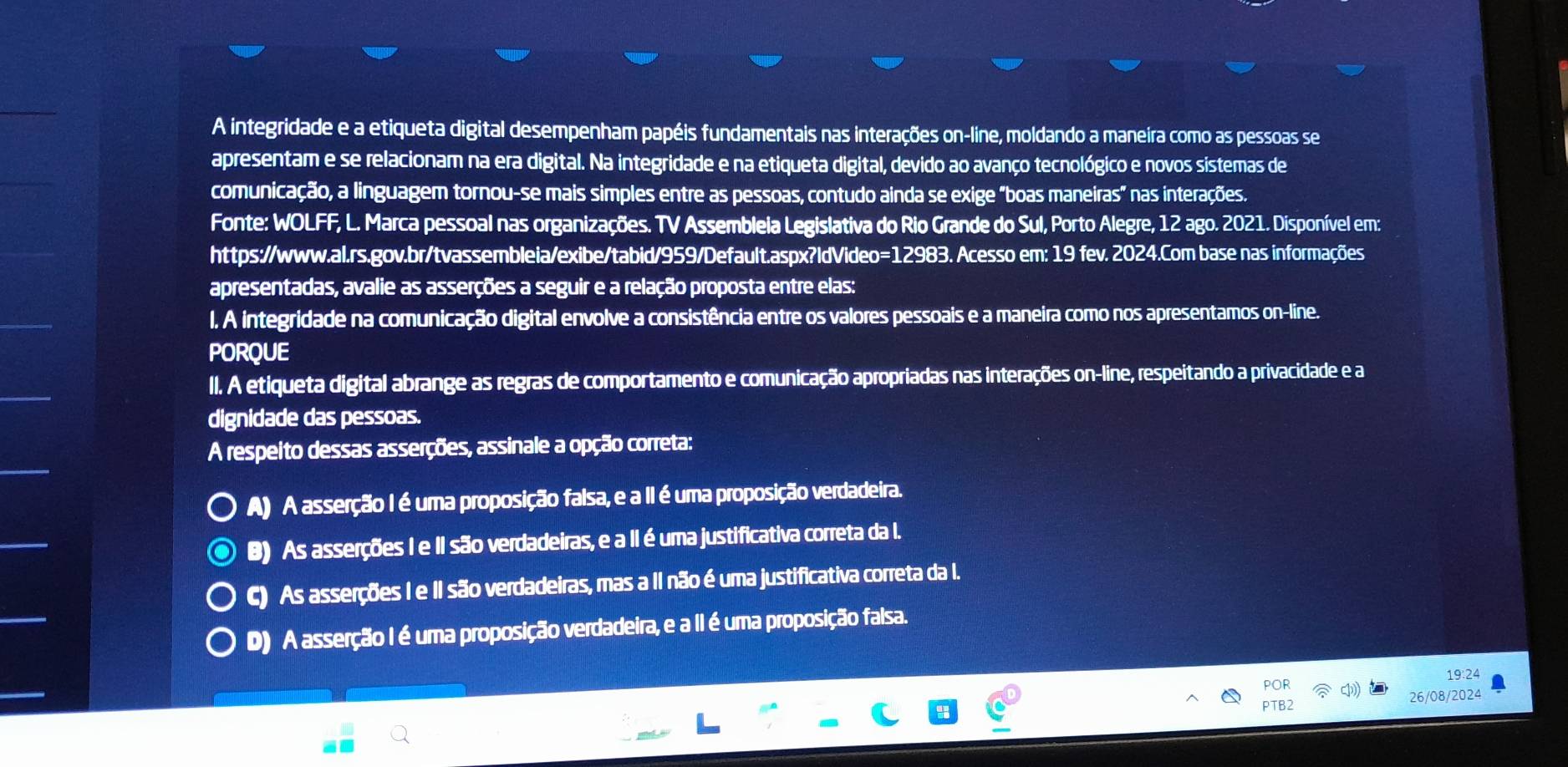 Solved: A integridade e a etiqueta digital desempenham papéis
