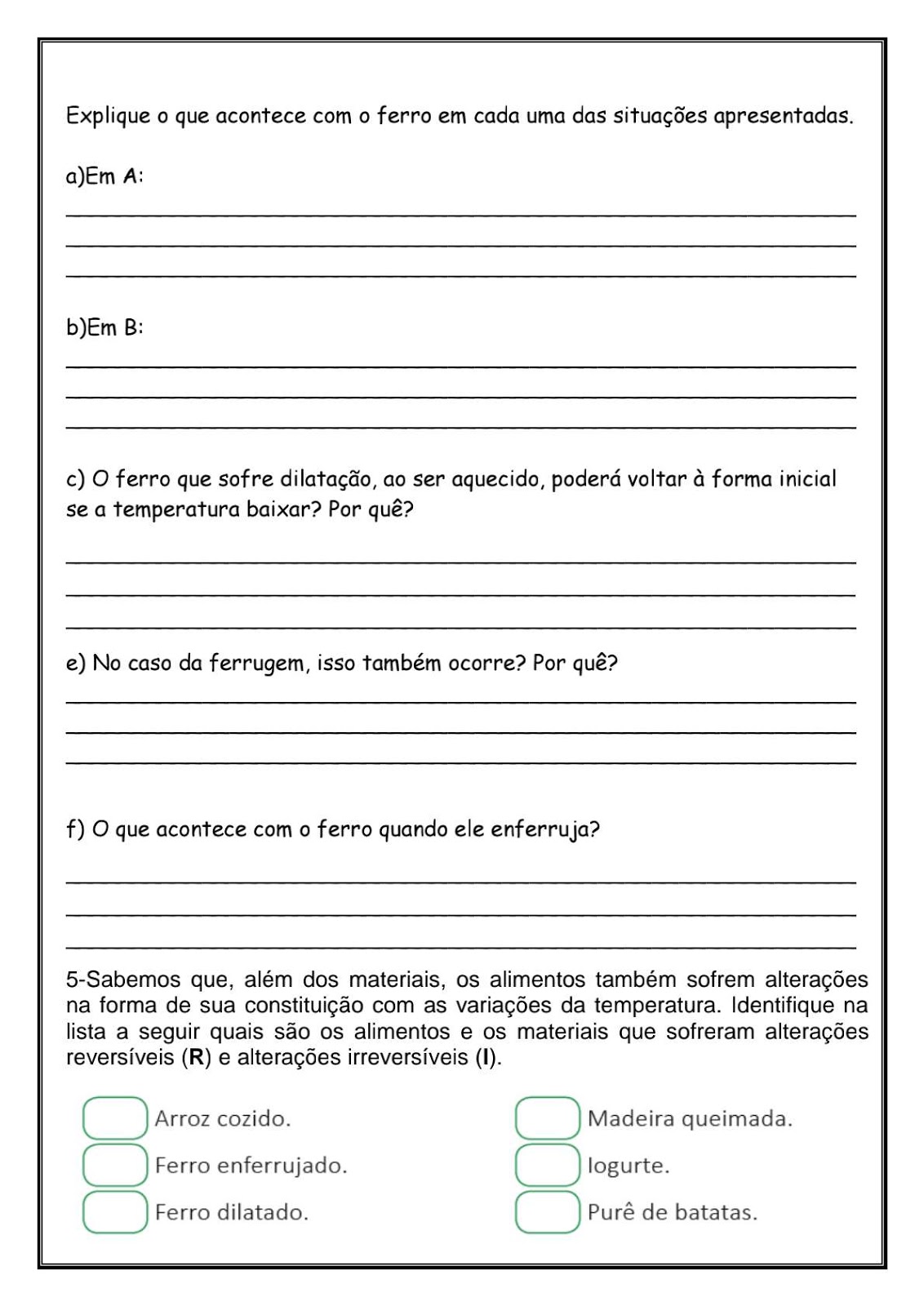 Atividades Sobre Transformações Químicas E Físicas 6 Ano Com Gabarito