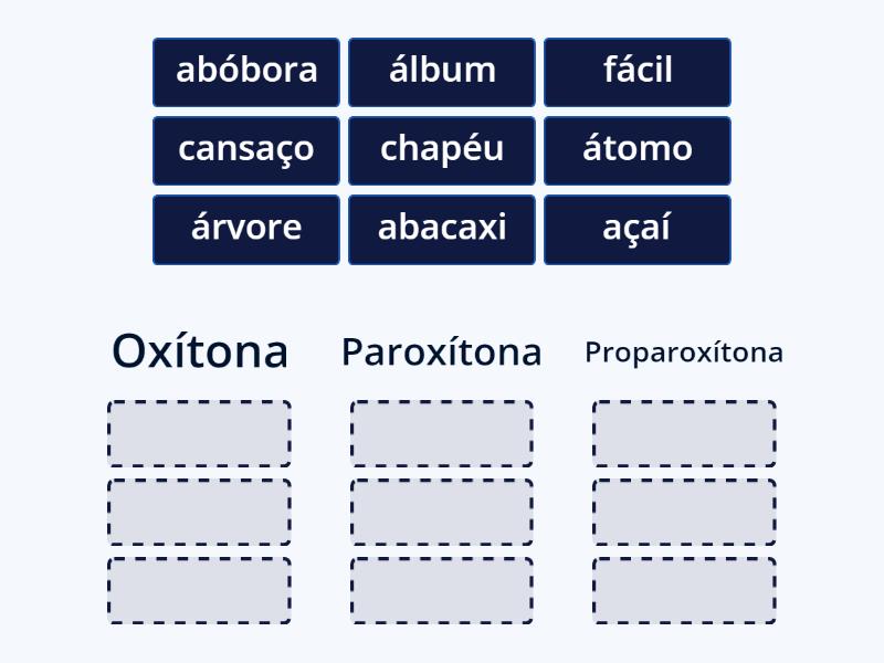 Classifique-as em oxítonas, paroxitonas ou proparoxitonas - Group sort