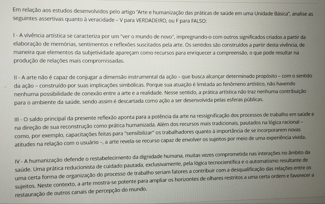Resolvido:Em relação aos estudos desenvolvidos pelo artigo ''Arte e