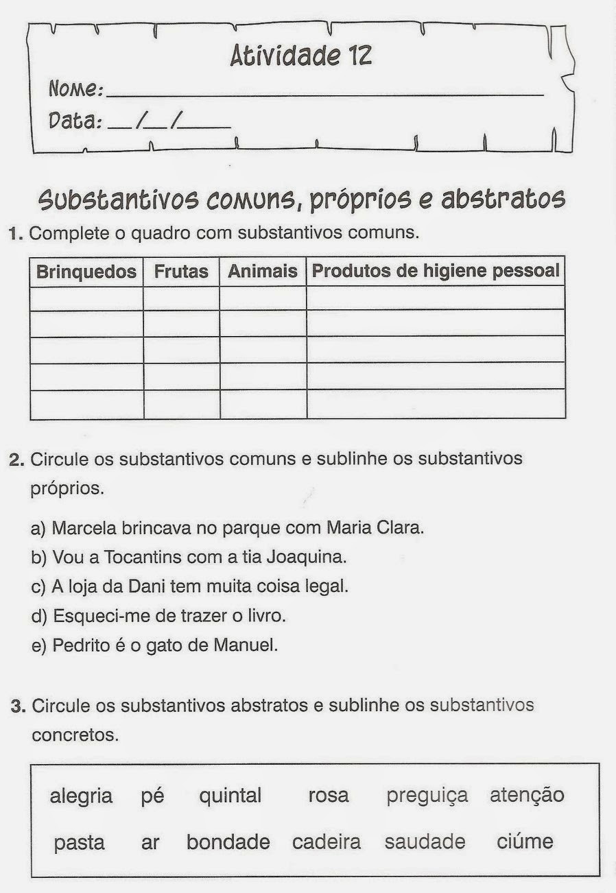 Atividades Substantivos 6 Ano Com Gabarito - REVOEDUCA