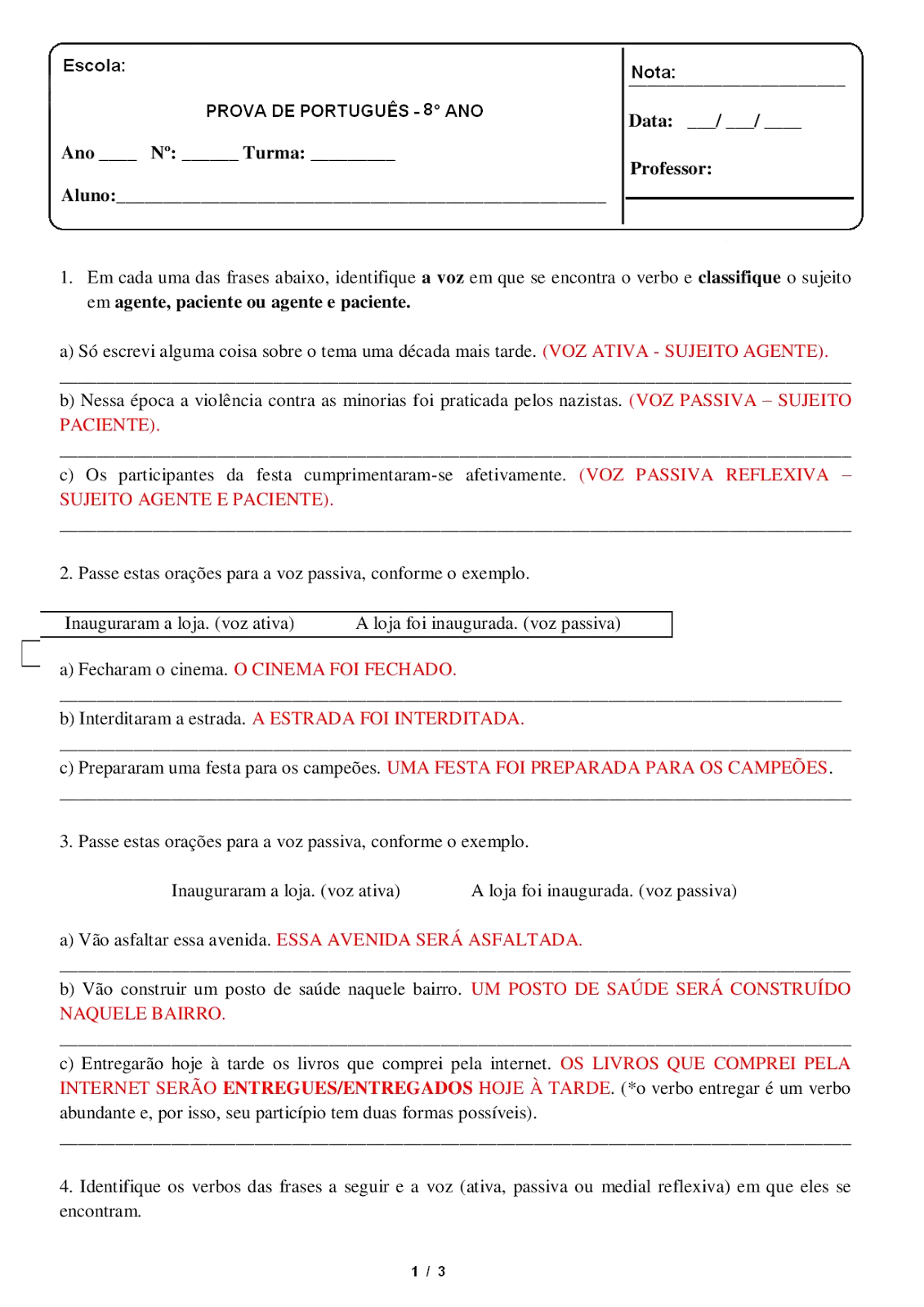 Exercícios Verbos Transitivos E Intransitivos 8 Ano Com Gabarito